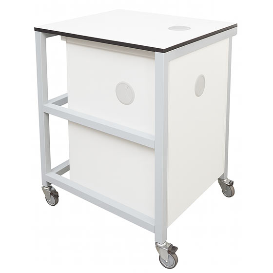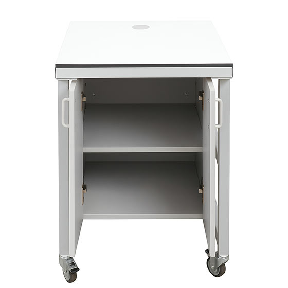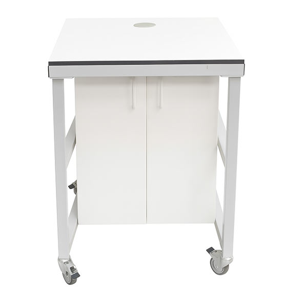 Passe-câbles intégrés sur les côtés du meuble et dans le plateau
