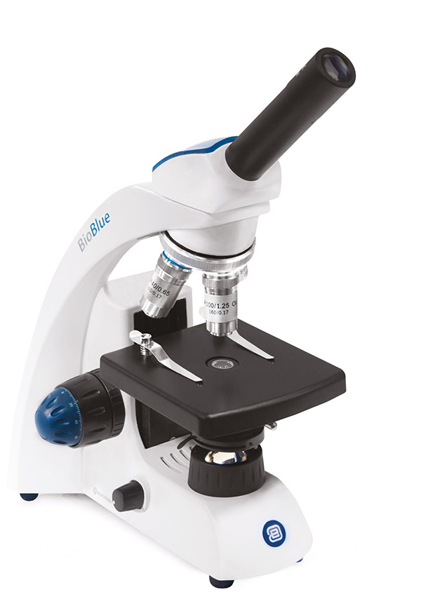 Microscope monoculaire à LED avec Ojectifs SMP 1000 x et Platine à déplacement X-Y - EU 3015 “BioBlue”